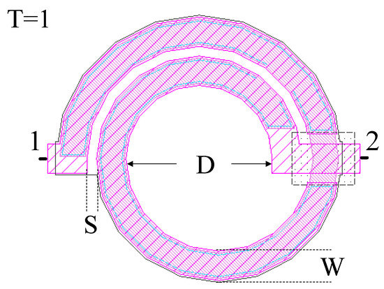 The size parameters for circular inductors include W (line width), S (line spacing), D (inner radius), and T (number of turns), as illustrated in Figure 11. These parameters represent the physical characteristics of the inductor PCell structure.