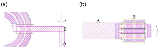 Using Node 1 as an example, the left subtree of Node 1 represents the concatenation of traceable device No. 1 without flipping, while the right subtree represents the mirror-flipped version of traceable device No. 1. As shown in Figure 4a, when traceable device No. 1 is properly interconnected, a layout overlap occurs. To resolve this issue, a vertical flip operation can be applied to the first retrievable device, as demonstrated in Figure 4b. Therefore, the state of layout stitching can be described by the splicing states at each backtracking point. By finding the correct path in the decision tree, the layout stitching problem of the RF circuit can be solved.