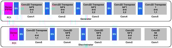 Specifically, our CGAN comprises a generator network and a discriminator network, as shown in Figure 3. The generator consists of five convolutional transpose layers and a denoising fully connected layer to generate feature maps from input images. The discriminator comprises five convolutional layers and a denoising fully connected layer to reconstruct the original image. The generated images are used to augment the available dataset, improving the performance of the DLMs.