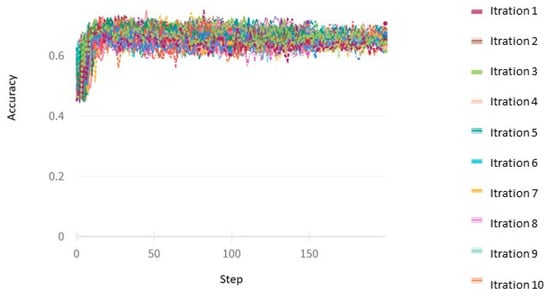 This study conducts a grid search algorithm to perform hyperparameter selection for both machine learning and deep learning approaches. The objective of this process is to identify the optimal values of hyperparameters that result in maximum accuracy. Table 2 lists the hyperparameters utilized in the proposed methods, which are obtained through 100 iterations for each model. The model training process is carried out iteratively with various hyperparameter values for the optimizer, learning rate, and activation function of the deep learning layers to select the optimal hyperparameters for the deep learning approach. Figure 8 presents the learning curve for accuracy during the hyperparameter optimization, demonstrating that the model performance improves with each run due to the variations in the hyperparameter values. Moreover, Table 3 displays some of the iterations conducted for hyperparameter optimization for the deep learning model, while Table 2 illustrates the selected hyperparameters for the proposed methods.