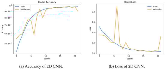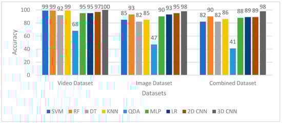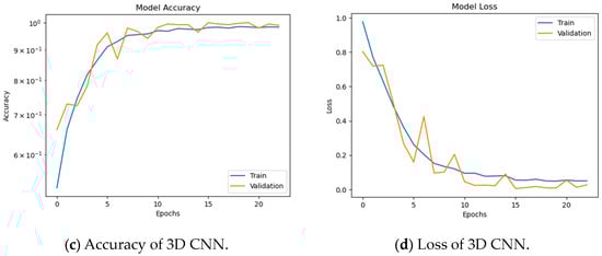 This research paper employs a fatigue detection technique that analyzes video frames to determine the driver’s level of awareness, specifically identifying whether the driver is alert, tired, or non-vigilant. The objective of this study is to develop an accurate model with low testing time, utilizing both machine and deep learning models. The machine learning approach implemented in this study includes SVM, RF, DT, KNN, QDA, MLP, and LR, while the proposed deep learning approach involves 2D and 3D CNNs. Figure 9 and Figure 10 present the learning curves of the proposed models, demonstrating that the model performance improves during the training process. Table 4 lists the evaluation metrics of the proposed models, including precision, recall, accuracy, and F1-score. The simulation results indicate that the SVM, RF, and KNN machine learning models have superior performance for fatigue detection from videos, achieving an accuracy of 99%. Furthermore, the proposed 3D CNN deep learning model achieves an accuracy of 99%. Thus, the proposed models offer effective solutions for video fatigue detection.