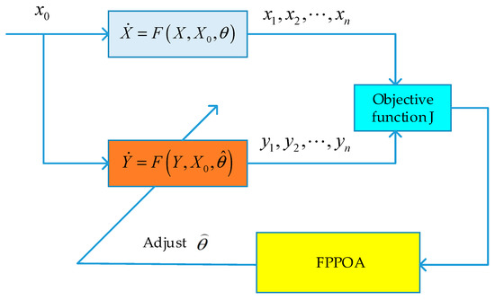 Initially, the sum of squared errors in the parameter estimation is computed by comparing the output values of the original system with those of the system to be estimated. Subsequently, the feedback obtained is fed into the FPPOA to generate new estimates. Finally, the estimated value is adjusted through multiple iterations to minimize the optimization function, J.