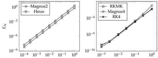 - Magnus, W. On the exponential solution of differential equations for a linear operator. Commun. Pure Appl. Math. 1954, 7, 649–673. [Google Scholar] [CrossRef]