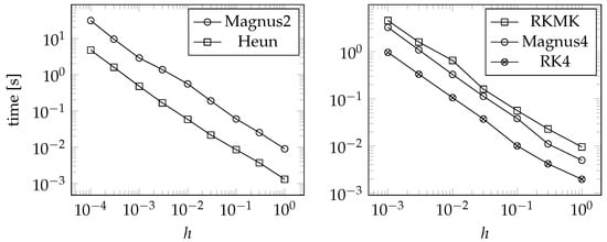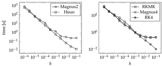 - Munthe-Kaas, H. Runge-Kutta methods on Lie groups. BIT Numer. Math. 1998, 38, 92–111. [Google Scholar] [CrossRef]