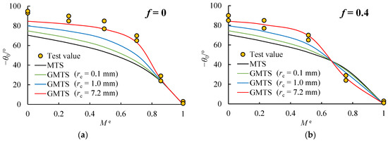 In the GMTS criterion, the T-stress was considered in the stress field at the crack tip, thus the tangential stress, σθ, at the crack tip is expressed as follows:
