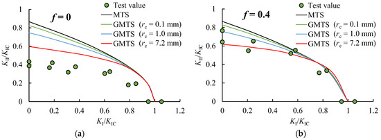 By combining Equations (A1)–(A3), the conditions required for the mixed-mode I/II fracture can be rewritten in terms of mode I fracture toughness KIC: