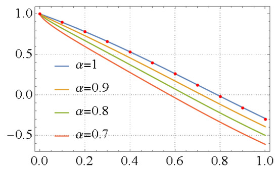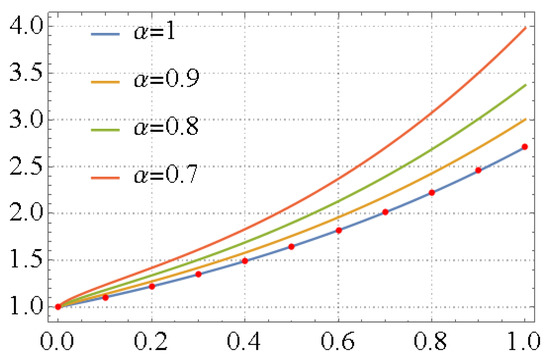 In a similar way, we calculate the solution while varying the fractional derivative .
