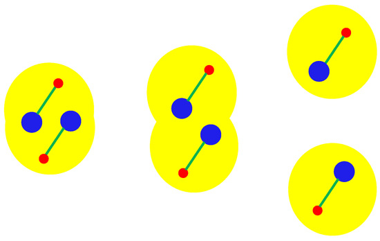 Figure 2e,f show the color octet–octet configuration, in which two color octets are combined to form a tetraquark or a pentaquark state. In this configuration, the colored baryons and mesons generally have high mass due to the repulsive interactions. The tetraquark and pentaquark states consisting of two color octets usually have higher mass than that of other configurations. Thus, the color octet–octet configurations are often neglected in the study of multiquark states. Sometimes, they are combined with the molecular configuration to construct a complete color space [28].