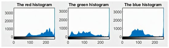 Histograms representing intensity distributions are created following the color decomposition phase for each color channel. As seen in the preceding image (Figure 2), each color channel’s distribution is represented by one of the three histograms in Figure 3. In the R histogram, the R’s intensity values are indicated on the X-axis, with a scale from 0 to 255 being used. The frequency of each intensity is reflected on the Y-axis. The same axes are displayed in the G and B histograms measuring data related to G and B.