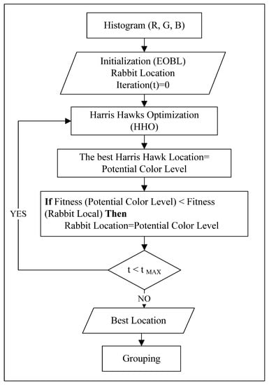 The technique of determining the color level for each color using Harris hawk optimization (HHO).