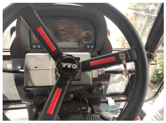 A test was conducted to evaluate the noise and vibration characteristics of 10 types of large-horsepower tractors from 5 manufacturers. Drivers operating tractors within the cab are not only influenced by the noise present in the environment but also by the vibrations transmitted through the steering wheel and seat, both of which significantly impact driver comfort []. The goal of the test was to accurately measure the noise and vibration levels inside the tractor cab under different working conditions while taking into account the human binaural masking effect on the time and frequency domain signals. To achieve this, an HMS III artificial head produced by HEAD was utilized. As the structure of the tractor cab is symmetric, the artificial head was mounted on the driver’s seat, with its binaural microphones positioned at a height of 0.7 m ± 0.05 m above the seat-back junction, as shown in Figure 2. This setup allowed for the collection of noise samples that accurately reflected the real acoustic characteristics inside the tractor cab. In addition to the artificial head, acceleration sensors made by B&K were used to measure the vibrations of the steering wheel and seat, as shown in Figure 3 and Figure 4. The test was conducted in an open area with no sound reflectors within 50 m of the surrounding area, and the cab air conditioner and windows were closed during the test. To ensure that sufficient data were gathered for analysis, a signal time duration of 10 s and a sampling rate of 48 kHz were used. The analysis of the noise data took into account the range of sound perception by the human ear, which spans from 20 Hz to 20,000 Hz. Hand vibrations at the steering wheel position were analyzed within the frequency range of 1 Hz to 1000 Hz, while seat vibrations were analyzed within the range of 1 Hz to 80 Hz. The tractors were tested under idle, maximum torque, and rated power conditions, and a total of 30 data samples were collected. The noise and vibration data for each tractor model under each condition are presented in Table 2. The subscript of the sample number indicates the tractor number, while I, T, and R represent the three different working conditions of idle, maximum torque, and rated power, respectively. VH and VS represent the hand vibration and seat vibration of the driver, respectively. In conclusion, the test results provided valuable insights into the noise and vibration characteristics of large horsepower tractors under different working conditions. The methodology used in the test, including the use of artificial head and acceleration sensors, provided a reliable and accurate means of measuring noise and vibration levels inside the tractor cab.