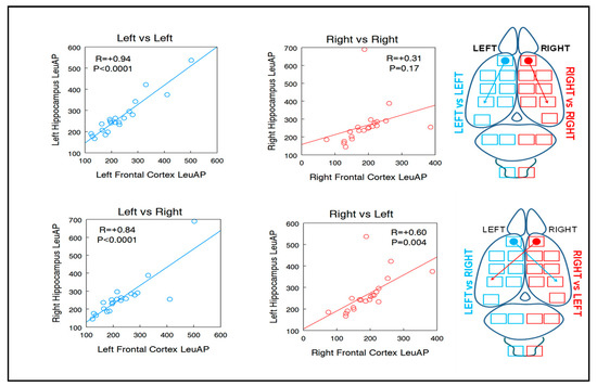Example of intra- and inter-hemispheric correlations of LeuAP between frontal cortex and hippocampus.