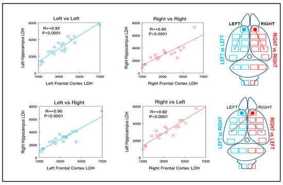 Example of intra- and inter-hemispheric correlations of LDH between frontal cortex and hippocampus.