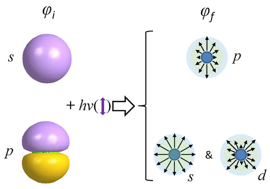 In one-photon, electric-dipole allows atomic transition, angular momentum conservation must be conformed, and the photodetachment selection rule is Δl = ±1 as the absorbed photon carries one quantum of angular momentum. During photodetachment, the absorbed photon is transferred to the electron. As illustrated in Scheme 1, generally speaking, photodetachment from an orbital with typical s symmetry character (l = 0) leads to a free-electron wave characterized by a single l = 1, corresponding to a p wave symmetry. Under the electric-dipole approximation, a photodetachment is accessed as long as the transition dipole moment . Here, μ = −er is the dipole operator, while φi and φf represent the initial and final states of the electron upon photodetachment, respectively. As laser light is z-polarized, only Mz is addressed: