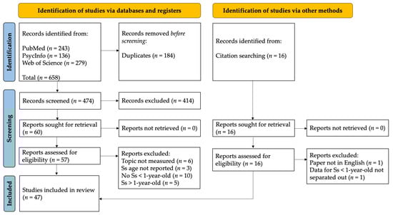 This systematic review of the literature on behavioral laterality across the first year of life in primates was conducted and reported using the Preferred Reporting Items for Systematic Review and Meta-Analyses guidelines (PRISMA 2020 statement; [19]), and the review protocol was prepared with the Preferred Reporting Items for Systematic Review and Meta-Analysis Protocols (PRISMA-P) statement [20,21]. The protocol was registered via OSF on 15 January 2023 and amended on 4 May 2023 [22].