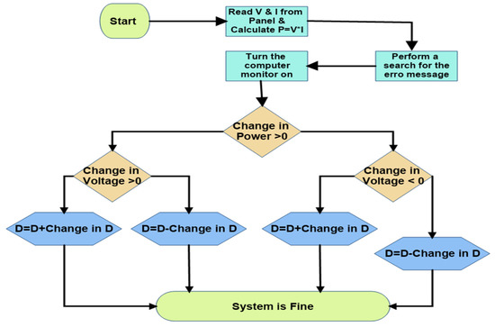 In this study, the perturb and observe (P&O) MPPT algorithm was simulated, along with a boost converter for the maximum utilization of available power [26]. Figure 7 shows the flow of the system used for the simulation.