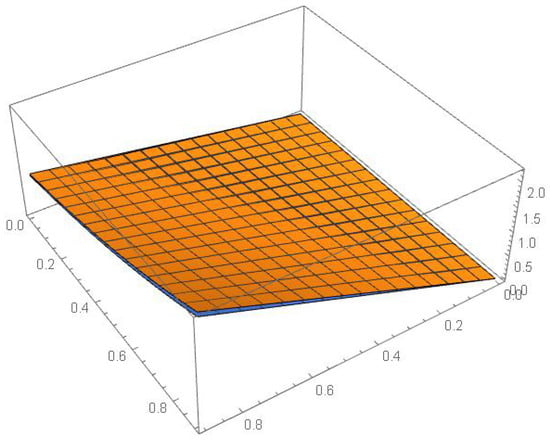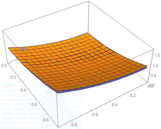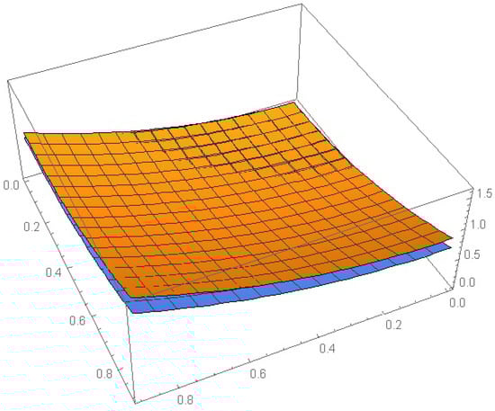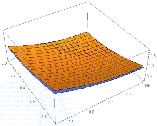 - Three illustrative examples are provided to evaluate and validate the effectiveness and dependability of the proposed method. Tables and Figures are used to show the numerical results. For example, Figure 1, Figure 5 and Figure 9 contained the numerical solution of Examples 1, 2 and 3, respectively, for different values of and K. Figure 1, Figure 2, Figure 3, Figure 4, Figure 5, Figure 6, Figure 7, Figure 8, Figure 9, Figure 10, Figure 11 and Figure 12 formed the absolute errors of each example with different values of x and y.