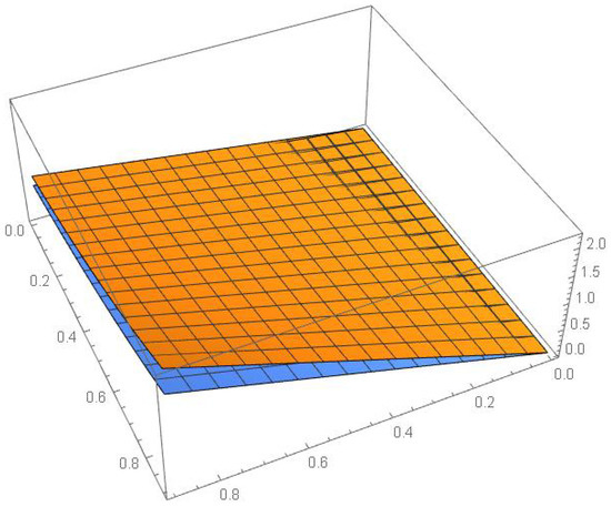the integral operators in Equation (13) are approximated by using the Gauss–Legendre quadrature formula. For this, we use the following transformations to convert the integrals over into the integral over ,