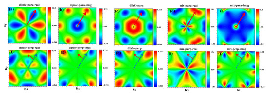 (a,b) are the real and imaginary parts of parallel transition dipole moments, respectively. (c) is the parallel part of derivative of band energy difference. (d,e) are the real and imaginary parts of parallel mixture term, respectively. (f,g) are the real and imaginary parts of perpendicular transition dipole moments, respectively. (h) is the perpendicular part of derivative of band energy difference. (i,j) are the real and imaginary parts of perpendicular mixture term, respectively.