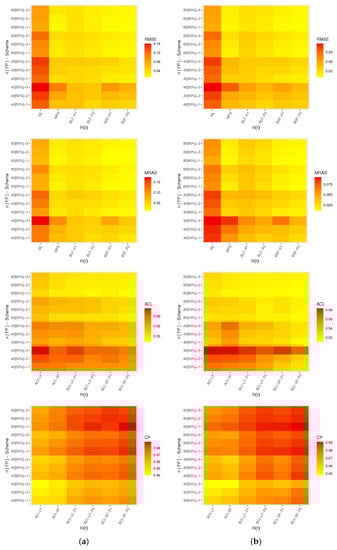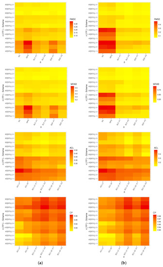 where , , and . As in the case of the MLEs, one should utilize numerical procedures to solve Equations (19) and (20) to determine the MPSEs of and . According to Cheng and Traylor [25], the MPSEs possess the same invariance property as the MLEs. Therefore, we can obtain the MPSEs of the RF and HRF using this property as follows
