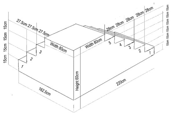 The stairs consisted of six steps and a platform at the top of the sixth stair, with enough room for the subject to turn (Figure 1).