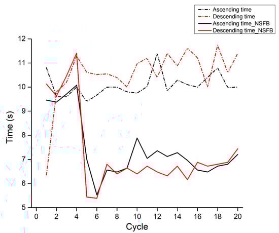 According to the results of the paired-sample t-tests presented in Table 4, it can be concluded that there were statistically significant differences in the TIME parameter between the compared conditions (with and without NSFB) in both directions (ascending and descending). The time was significantly shorter in conditions with NSFB (pascending = 0.000, pdescending = 0.000).