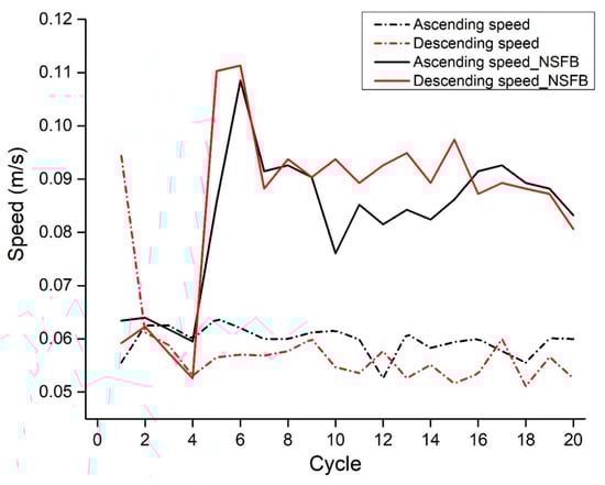 Similarly, according to the results of the paired-sample t-tests presented in Table 5, it can be concluded that there were statistically significant differences in the SPEED parameter between the compared conditions (with and without NSFB) in both directions (ascending and descending). The speed was significantly greater in conditions with NSFB (pascending = 0.000, pdescending = 0.000).
