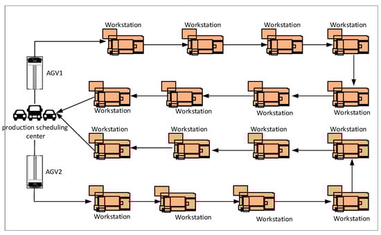With the rapid development of Industry 4.0, the traditional forms of industrial work are facing unprecedented challenges. The construction of an intelligent workshop becomes an important starting point and a technical way for the manufacturing industry to promote digital transformation. Its core content is to improve the overall level of product production. As an important auxiliary link in the workshop, material distribution occupies a large proportion of the operation cost [1,2]. As one of the important carriers of workshop logistics, the material handling system composed of AGVs can greatly improve the production flexibility and competitiveness of enterprises.