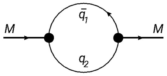 The Nambu–Jona-Lasinio (NJL) model, based on the ideas of Y. Nambu and G. Jona-Lasinio (Refs. [,] are the original papers), is widely used in the low-energy phenomenology of light quarks (). The hadron masses are generated by the spontaneous breaking of chiral symmetry, where the pion plays the role of the Goldstone boson. This approach has found many applications in light meson physics due to the simplicity of calculations; for review, see, e.g., Ref. []. Some efforts have been made to extend the NJL model to applications in heavy mesons by taking into the account the heavy quark symmetry [,]. In our earlier paper [], which was a predecessor to the CCQM, a clear relation of the so-called compositeness condition (addressed later) with the requirement for the correct normalization of the kinetic term in the NJL Lagrangian after the spontaneous breaking of chiral symmetry was shown.
