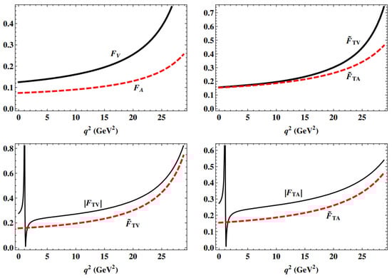 A distinctive non-perturbative theoretical technique to investigate the strong-interaction physics are the QCD sum rules [,]. The central objects of interest are the correlation functions of interpolating quark currents, treated using the operator product expansion (OPE) and expressed in term of a perturbative continuum contribution and a low-energy parameterization. These are then matched by assuming the quark–hadron duality. The results are derived in the form of sum rules, while the uncertainties have to take into account various necessary approximations. Among others, the results for leptonic decay constants and hadron transition form factors have been derived [,].