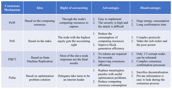For traditional blockchain, there are several mature consensus mechanisms. When combined with energy trading, it is also likely to adopt a more traditional mechanism or slightly modified one to meet the requirements of the system. Several common consensus mechanisms, e.g., Proof-of-Work (PoW), Proof-of-Stake (PoS), and Practical Byzantine Fault Tolerance (PBFT) [28], are introduced as follows.