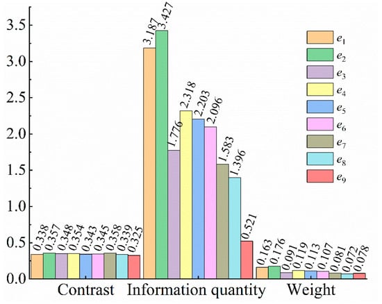 The information-carrying capacity and contrast of the evaluation index are set as , , respectively. Equation (14) is used to calculate the contrast and contradiction of the evaluation index.