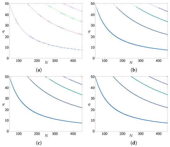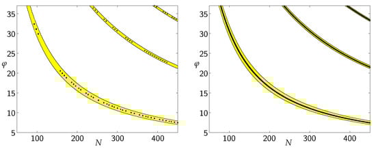 with high accuracy, where the constant . It is notable that, at a given , it is possible to relate the number of the ripple units in the band i with the aid of the number of units in the band j and, consequently, to exclude the constant . Indeed, in virtue of relations (50)–(51), we can formulate the following result