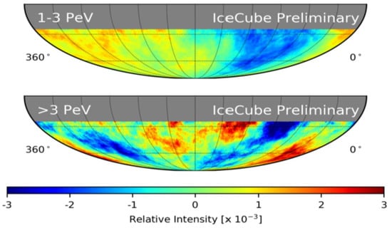- Aartsen, M.G.; The IceCube Collaboration. Observation of cosmic ray anisotropy with nine years of IceCube data. In Proceedings of the Science, 32nd Cosmic Ray Conference, Berlin, Germany, 23 July 2021. [Google Scholar]