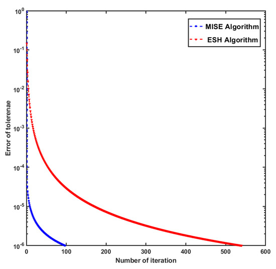 Figure 1. The number of iterations of MISE Algorithm and ESH Algorithm, where dimension is n = 50 .