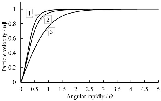 A graph of the dependence of the particle velocity on the angular integral of motion for (1) a free particle, (2) a particle in the field of a plane wave, and (3) a particle in the field of a plane laser pulse.