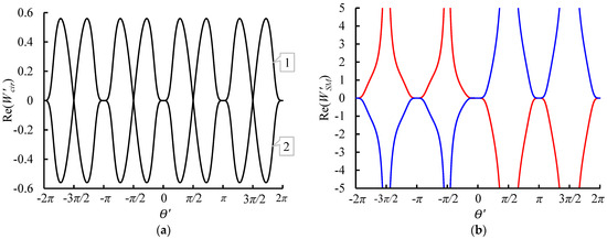 Graphs of the dependence of the total radiation power of a relativistic particle in the Euclidean phase plane for and are shown in Figure 5.
