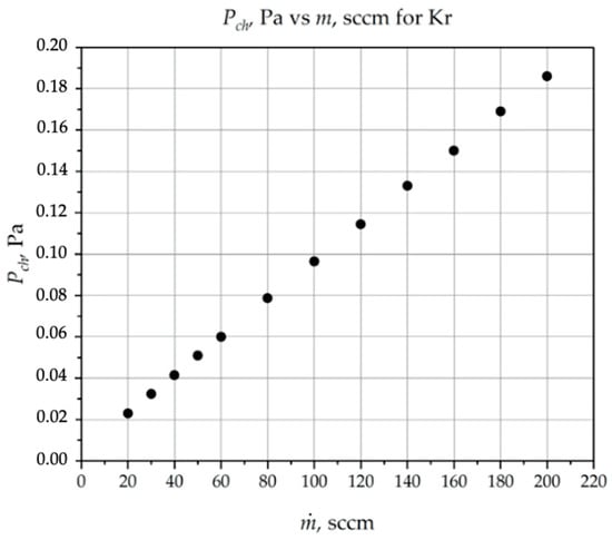 The dynamic background pressure in the vacuum chamber ranges from 20 mPa at 20 sccm to 190 mPa at 200 sccm (see Figure 6).