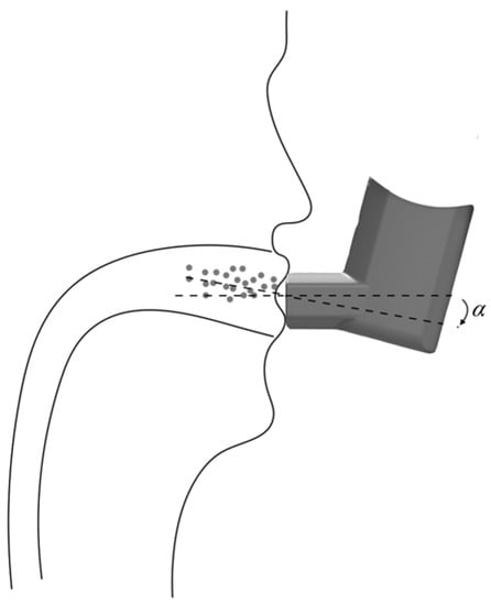 - An incidence angle of 0°, and an increase in the peak inspiratory flow rate caused the drug particles to easily contact and deposit themselves on the convex tip of the tongue and body surface of the tongue under the inertial impact of the inspiratory airflow, the deposition fraction of the drug particles in the mouth and throat gradually increased from 55.78% to 65.75%;