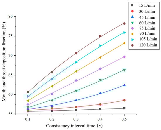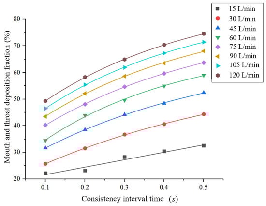 3.3. Effect of Inspiration–Press Interval Time on the Deposition Fraction in the Mouth and Throat Regions