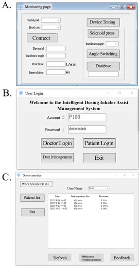 - The medication data of the patient are then uploaded to a PC via serial communication and to a database via the upper computer software, which includes device ID, medication time, peak inspiratory flow, and interval time.