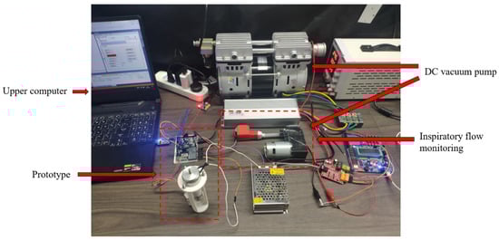 - the DC vacuum pump was connected to the inspiratory flow monitoring device in the test platform; the constant flow rate was then tested from 15 to 120 L/min at 15 L/min intervals. Each flow rate was tested thrice, and the average of the inspiration–press intervals obtained from the final tally was used as the interval time;