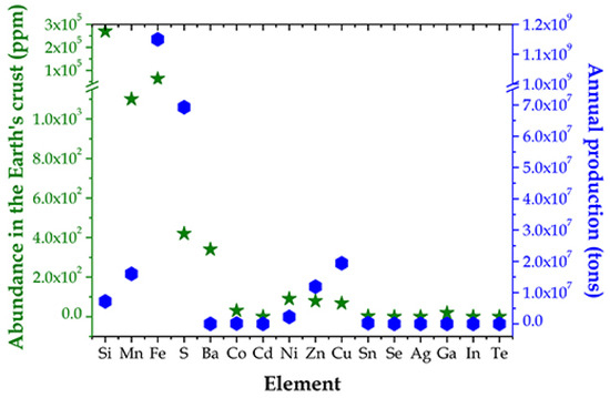 In the research framework of Earth-abundant, non-toxic, and low-cost materials, which should be explored for high-efficiency solar cells, CZTSSe has been intensively researched, being a promising absorber candidate. However, two concerns related to this technology should be emphasized. The first is that at the TW scale, CZTSSe will also suffer from material or resource constraints, even if to a lower extent with respect to CIGS and CdTe. In fact, Zn, which is a component of CZTSSe, is widely known as an “element under serious threat of extinction in the next 100 years” (Figure 7). The second concern is that CZTSSe is a multinary compound, and therefore stringent phase and composition control are mandatory to achieve high device efficiency.