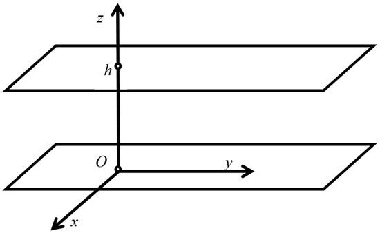 Next, we consider the shear flow of a fluid. In this case, the velocity vector contains one zero coordinate: . The use of shear flows is justified in describing large-scale fluid flows, taking into account the geometric anisotropy of the fluid layer (thin fluid layer). For large-scale fluid flows (in the world ocean), free-fall acceleration is a weakly changing parameter (up to 1% of the average value). Despite the fact that the real movement of the fluid is three-dimensional, for small values of one of the velocity components, it can be set equal to zero in the initial studies. The study of fluid motions for boundary conditions such as a “solid” cover can be carried out exhaustively using the model of shear flows [18,19,20,21,25,26,27,28,29,30,31].