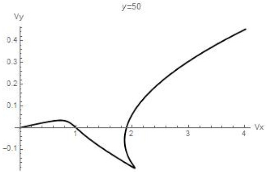 Note that the view of the hodograph , shown in Figure 4 is valid only for the cross-section y = 0, since, strictly speaking, due to expressions (27), it is also necessary to take into account the inhomogeneous terms in the expression for the velocity Vx. The corresponding term u2y, according to solution (30), is a linear dependence on the vertical coordinate Z, which leads to a “straightening” of the velocity profile U with distance from the control section y = 0 (Figure 5, Figure 6, Figure 7, Figure 8, Figure 9 and Figure 10).