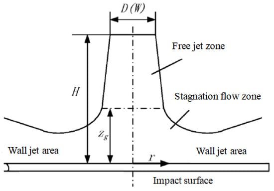 Therefore, according to H. Martin’s research on the impact jet, the recommended correlation formula of Nusselt number is as shown in Equations (5) and (6):
