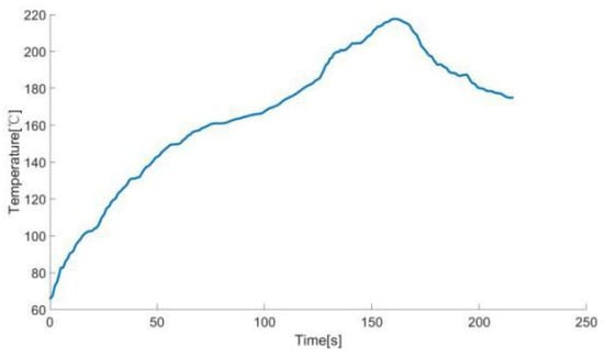 The temperature data of monitoring point five is divided into several parts, the starting time of each part is when the aluminum alloy plate just completely enters the temperature zone, and the ending time is when the aluminum alloy plate is about to partially leave the temperature zone, so as to ensure that the aluminum alloy plate, as a whole, in each part is completely in the temperature zone, and the average convective heat transfer coefficient, hc is calculated by extracting the initial temperature T(i), and the termination temperature T(t), of the aluminum alloy plate in the parts at the monitoring point five, and determining the density ρ, the constant-pressure heat capacity , and the air temperature Tair, by using Equation (16) [24].