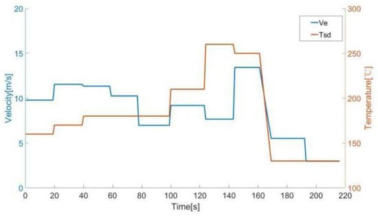 The zone temperature Tsd of each temperature zone in Table 3 above and the nozzle-matrix gas flow velocity Ve are used as the boundary conditions of the temperature simulation model. The airflow temperature and flow velocity of the nozzle in the model vary with time and are shown in Figure 8.