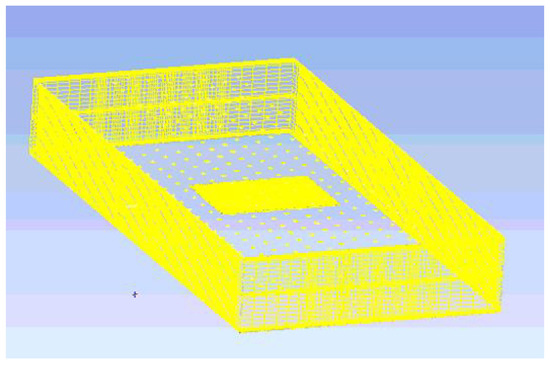 When the reflow soldering oven reaches a stable operating state, there is almost no interference between adjacent temperature zones, and the heating mechanism of each temperature zone is the same. Considering the symmetry of the 10 zones of soldering ovens, a single oven chamber model is established to represent the others to reduce computational resources. The single temperature zone oven chamber model was constructed in Ansys Icepak as shown in Figure 7.