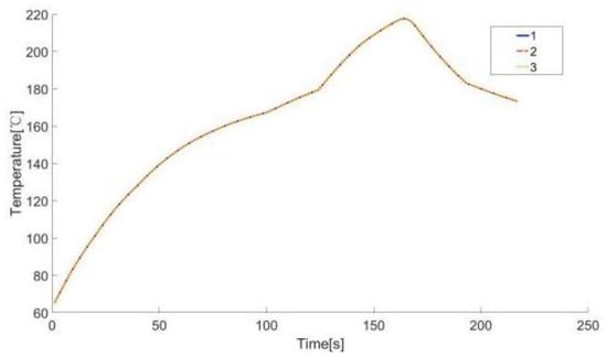 It can be seen from the Table 4 that the quality of the three mesh groups meets the accuracy requirement, and the mesh evaluation is almost the same. The temperature profiles corresponding to the three mesh groups are shown in Figure 10.